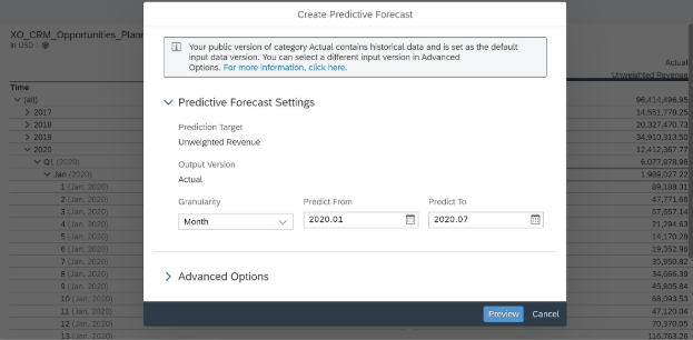 SAC nos permite ejecutar un pronóstico predictivo en forma mensual, trimestral, semestral y anual. Ahora con SAC Planning, podremos ejecutar un pronóstico predictivo en un modelo de planificación en las jerarquías de tiempo Y / H / Q / M, podremos llegar hasta nivel de «Día». Esto nos ayuda para modelos de Planning con distintas granularidades de tiempo.