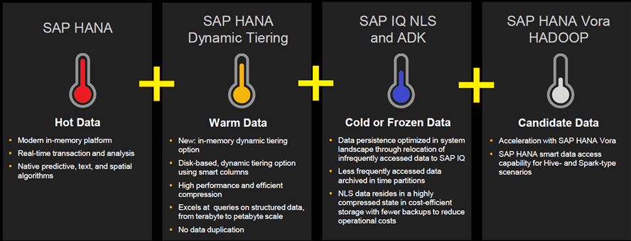 SAP BW / 4 HANA tenemos el concepto de multi-temperatura, donde podremos decidir donde alojar nuestros datos, siempre disponibles, pero como un grado de acceso distinto para poder aprovechar las capacidades de HANA.