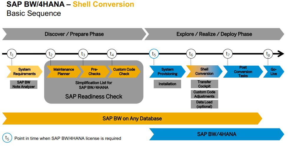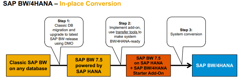 Esta opción es ir convirtiendo el sistema actual SAP BW en un SAP BW / 4 HANA, puntos a tener en cuenta: