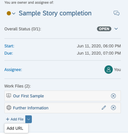 - Agregar enlaces URL como archivos de trabajo a sus tareas : además de historias y aplicaciones analíticas, podemos agregar enlaces URL como archivos de trabajo a nuestras tareas o procesos.