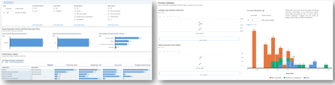 Con esta nueva actualización, podemos obtener estadísticas de sus modelos de mayor rendimiento, que se agregarán en un tablero / historia directamente dentro de SAP Analytics Cloud. Identificaremos fácilmente los modelos e historias que aportan la mayor carga y procesamiento al sistema de fondo, por lo que puede realizar mejoras según sea necesario. El panel de control contendrá una variedad de información sobre estadísticas de tiempo de ejecución del backend (Hana, BW) (y distribuciones), tipos de consulta, usuarios más frecuentes, modelos, conexiones y más.