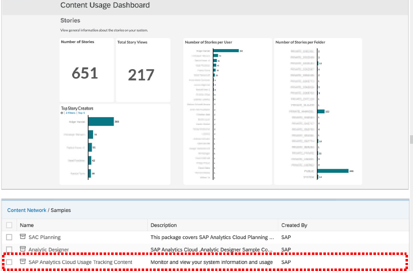 Uso del sistema, desde el Business Content nos proporcionan un paquete para poder activarlo y realizar el seguimiento de quién entra mas el sistema, el uso de las historias, modelos, etc