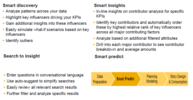En esta primera sesión nos explican y dan ejemplos de las capacidades de Smart que tiene SAP Analytics Cloud, como son, Smart Discovery, Smart Insights, Search to insight y Smart predict. Nos indican como poder utilizarlas y que podemos conseguir con ellas.