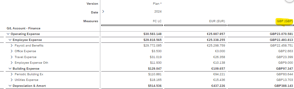 Con estas conversiones podremos utilizar tanto a nivel de reporting como de planificación para poder planificar en distintas monedas y ver las distintas conversiones.