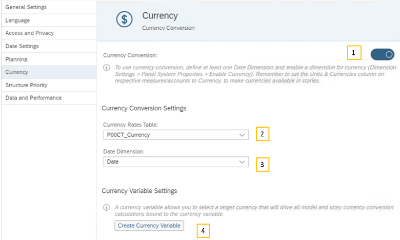 Antes de comenzar tenemos que tener una o varias tablas/modelos, de conversión de monedas, para poder después, asignarlas a los modelos de datos para realizar la conversión. En SAC podemos tener distintos tablas de conversión de monedas no solo una y poder usar cada una de ellas.