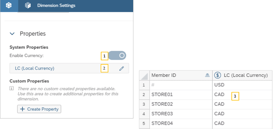 - Habilite la conversión de moneda para una dimensión (puede ser cualquier dimensión que tenga una propiedad de moneda, no solo dimensiones organizativas).