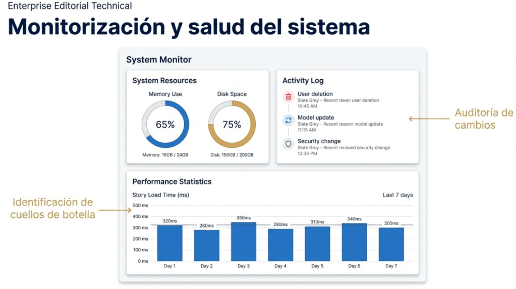 La monitorización no es una tarea opcional, sino una práctica esencial para cualquier administrador. Nos permite garantizar la estabilidad de la plataforma, identificar proactivamente cuellos de botella de rendimiento y auditar la actividad de los usuarios para cumplir con las normativas y políticas de seguridad.