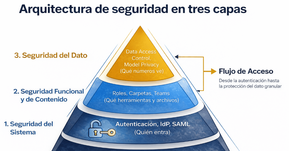 - Seguridad del Dato: ¿Qué números puede ver? Es la capa más granular, que filtra los datos a nivel de fila dentro de un mismo informe.