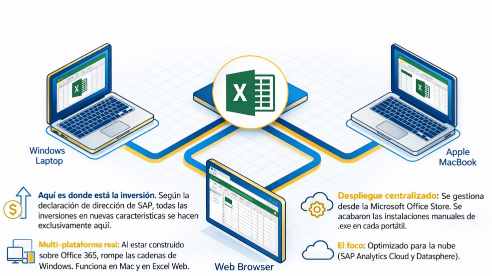 Si tu planificación vive en SAC y usas Office 365, el SAC Add-in es la opción natural. Más ágil, más alineada con el modelo cloud y suficiente para la mayoría de usuarios.