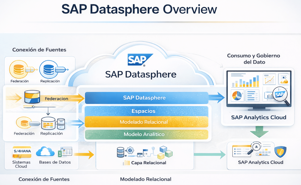 Antes de tocar botones en SAP Datasphere, vamos a entender el viaje del dato de punta a punta. Este curso va justo de eso: criterio, no pantallas. ¿Quieres te cuente como es?